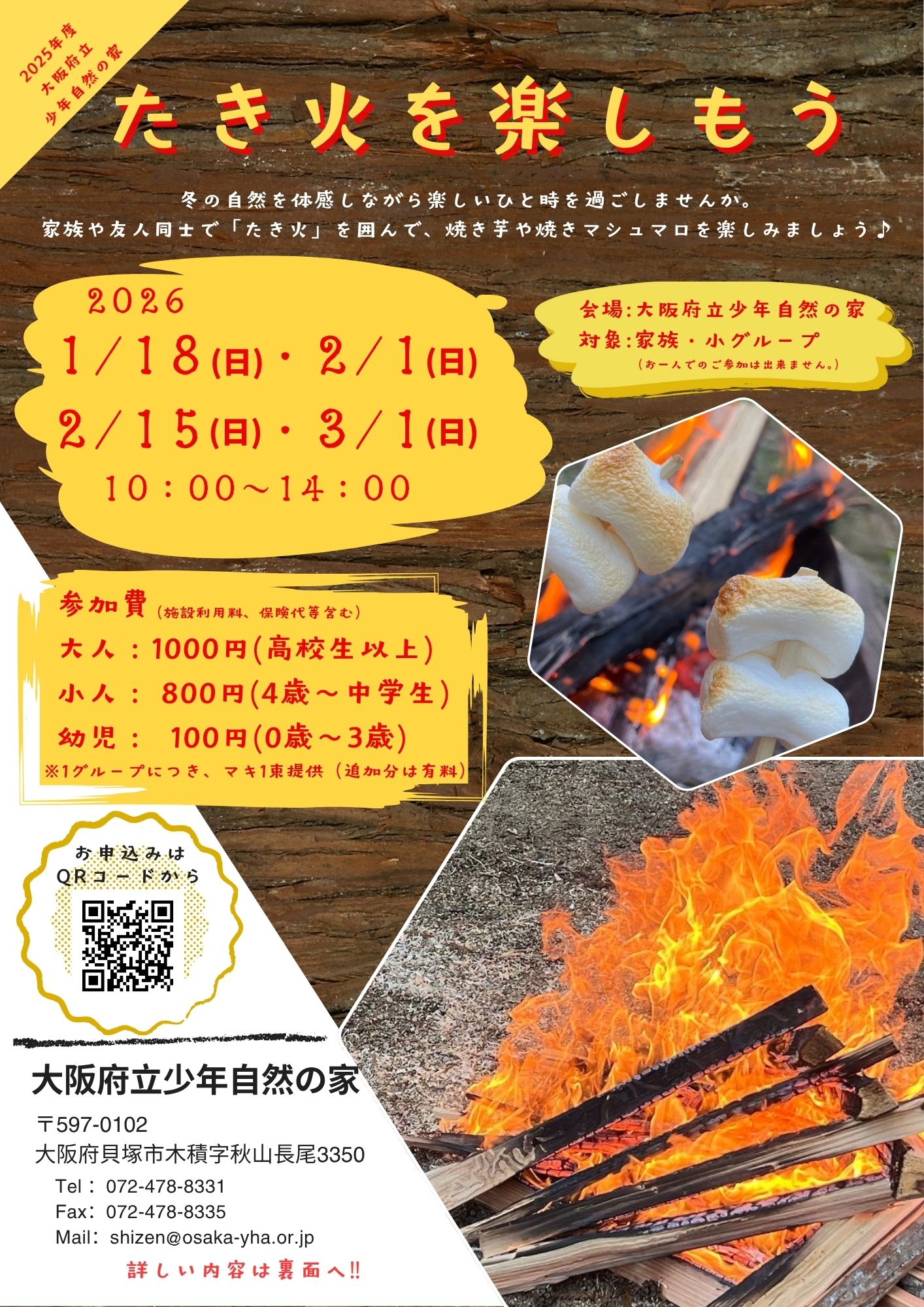 少年自然の家で、「たき火」を通して冬の自然を体感しながら楽しいひと時を過ごしませんか。